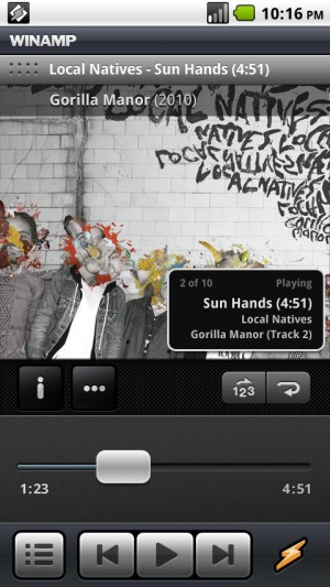 Winamp — один из наиболее популярных аудио-плееров для ПК теперь доступен и для пользователей Android-смартфонов. Вы можете синхронизировать аудио-коллекцию на ПК через USB или Wi-Fi. Удобный виджет позволяет управлять плеером с домашнего экрана устройства. Обеспечивает удобное управление медиаконтентом, поддерживает синхронизацию музыкальных библиотек с десктопной редакцией плеера, позволяет искать в Сети композиции и копировать понравившиеся мелодии в память устройства.