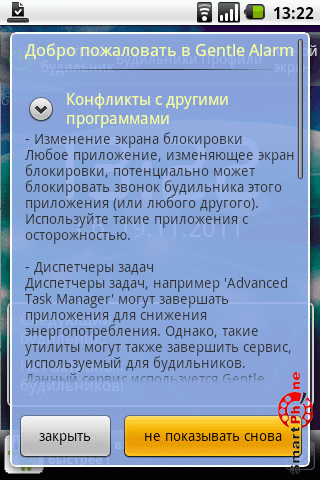 Программа Gentle Alarm представляет собой будильник для вашего смартфона. Утилита имеет богатый функциональный набор и широкий спектр настроек, позволяющих оптимизировать процесс пользования софтом.