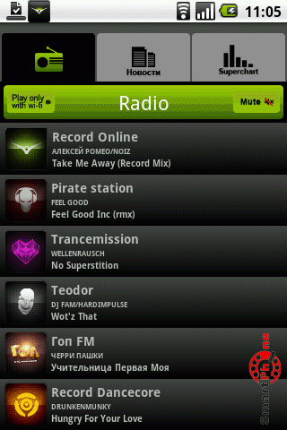 FM, Record Dancecore. А также в программе имеются свежие новости и