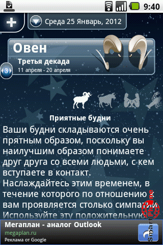 Приложение Horoscope представляет собой ежедневный гороскоп, подготовленный профессиональным астрологом с более чем 12-летним опытом. Гороскоп выгодно отличает от конкурентов то, что знаки зодиака разделены на 3 декады, контент не загружается при каждом запуске, а лишь при необходимости...