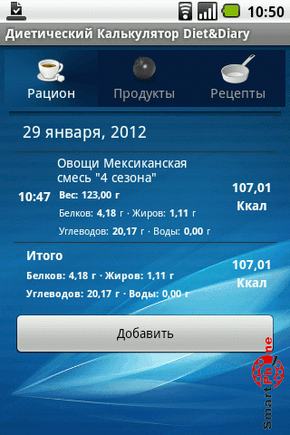 Приложение Диетический Калькулятор представляет собой программу, которая позволит вам вести ежедневный подсчёт калорийности своего питания, используя большую базу данных пищевой ценности продуктов, с возможностью добавления своих собственных.