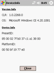 C помощью этой утилиты вы можете просмотреть следующую информациб об устройстве: CLR (Common Language Runtime), OS (Operating System), Preset ID и Platform ID.