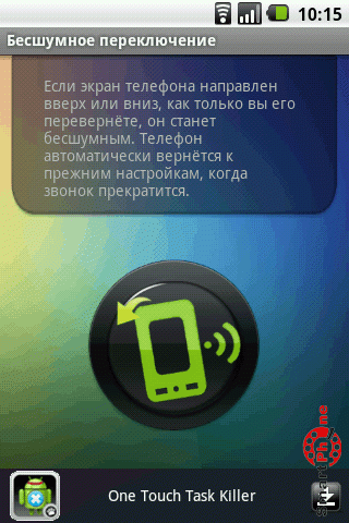 Приложение Бесшумное переключение представляет собой утилиту, позволяющую при входящем вызове быстро переходить в бесшумный режим, одним переворачиванием смартфона.