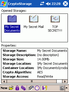 CryptoStorage - надежная и удобная в работе система для шифрования личных данных вашего КПК и управления доступом к ним. Работа CryptoStorage основана на принципе «сейфа».