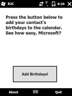 Простая программа, экспортирует дни рождения контактов в календарь.