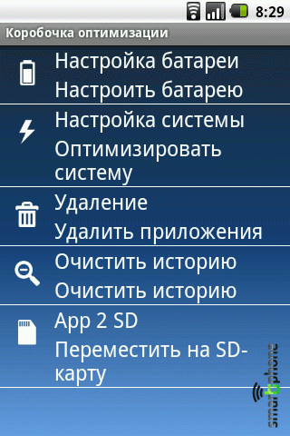 Приложение Коробочка оптимизации представляет собой инструмент, позволяющий управлять параметрами экономного режима и контроля яркости; увеличивать производительность телефона при помощи идеальной организации работы системы; чистить файлы кэша и истории в устройстве.