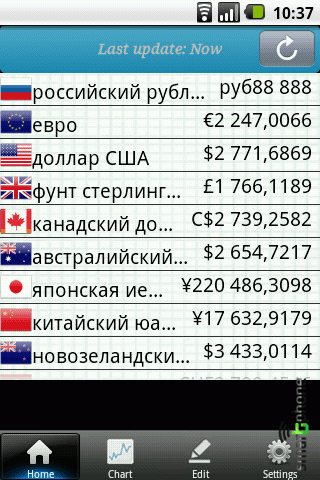 Currency представляет собой инструмент для конвертирования мировых валют, которых в программе насчитывается порядка 140. Имеется возможность использования софта без подключения к сети интернет, при условии предварительной загрузки обновлений курсов валют.