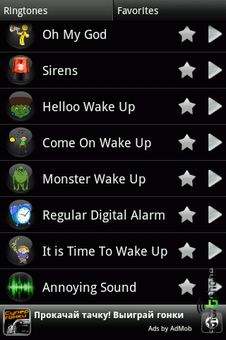 Funny Morning Alarm представляет собой приложение, содержащее в себе набор из 41 звуков, которые возможно установить в качестве сигнала вызова, уведомления, сигнализации и назначить контактам.