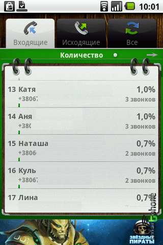 Stats Tracker представляет собой инструмент, позволяющий просматривать полную статистику по количеству и продолжительности звонков за любой период времени. Детализацию звонков можно увидеть как отдельно для входящих и исходящих звонков, так и для общей истории звонков.
