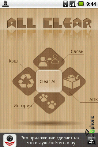 All Clear представляет собой инструмент, позволяющий чистить все файлы кэша, СМС, записи о звонках, историю и АПК. Имеется возможность, как выборочной очистки, так и удаления всех файлов одним нажатием...