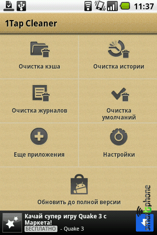 1Tap Cleaner представляет собой инструмент, позволяющий в одно нажатие очищать ваш смартфон от кэша, истории поиска и журнала звонков. Также возможно удаление настроек приложений использующих действия по умолчанию.