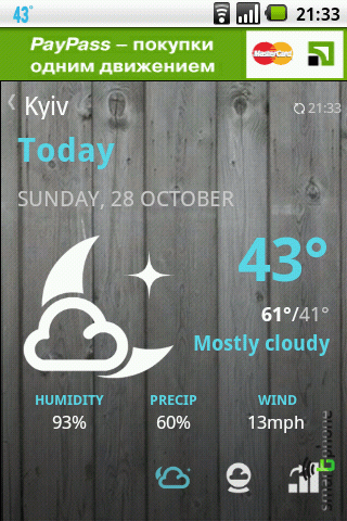 1Weather представляет собой инструмент для просмотра прогнозов погодных условий. Кроме базовой информации, возможен просмотр 7-ми дневного прогноза. информации о закате-заходе солнца, информации об осадках и влажности...