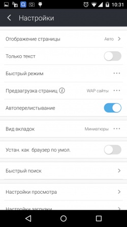 UC Browser имеет различные встроенные поисковые системы и функцию облачной синхронизации, поддерживает многооконность и функцию автозавершение ввода адреса, а кроме того, может похвастаться продвинутой технологией сжатия, уменьшающей потребляемый трафик на 85%.