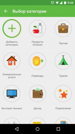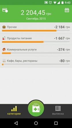 Приложение самостоятельно распределяет по категориям все траты по картам. Кроме того, пользователь вправе самостоятельно менять категории для каждой из них, а также для более подробного распределения расходов создавать собственные категории и переносить в них операции. Для добавления трат вручную предусмотрен счет “Наличные”.