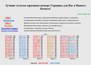 Золотые красивые эксклюзивные номера операторов мобильной связи Украины: МТС, Киевстар, Лайф и Билайн. Парные мобильные номера и трио! Купить эксклюзивный номер Вы сможете на нашем сайте!Регион: Украина Днепропетровск Добавлен: 15.12.2010