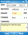 PocketKeeper - программа для учёта персональных финансов, заточенная под ежедневные записи карманных расходов. Можно использовать несколько счетов в различных валютах, создавать категории, планировать бюджет, получать графические отчеты.