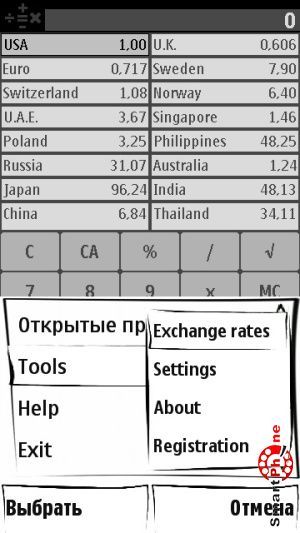 Tools - с помощью этой функции мы можем обновлять курсы валют, работать с основными настройками программы, просматривать информацию о данной версии программы и её разработчиках, провести регистрацию утилиты: