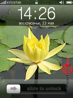 чтобы разблокировать экран нужно провести пальцем в определённом месте