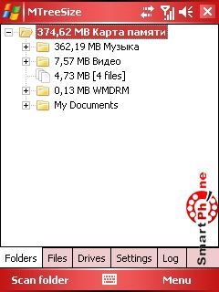 устройства или карты памяти в виде дерева папок с размером каждой