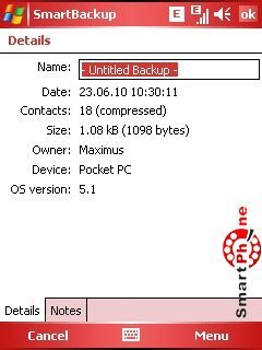 (+): Простой и интуитивно понятный интерфейс, делать бэкап записной книжки, бэкап делается на web-сервер, откуда в любой момент можно всё вернуть, программа занимает не большой объем памяти на устройстве.