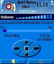 Ну и напоследок рассмотрим как же все-таки осуществляется запись голосовых напоминаний. Для этого переходим в меню All, и в функциях этого меню выбираем пункт New. После чего перед нашими глазами появляется меню записи, в котором наговариваем наше напоминание: