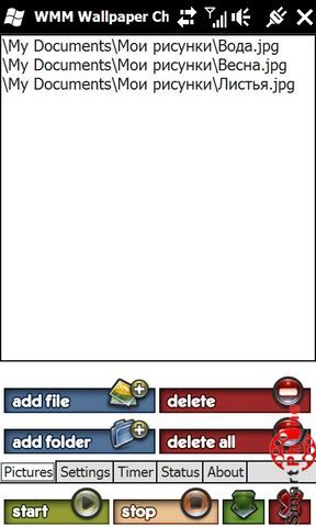 изображения, которые будут сменяться. "Delete" удаляет выбранное