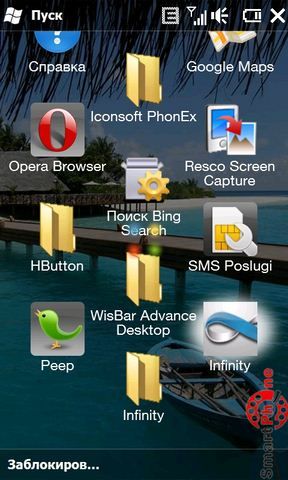 Новый пользовательский интерфейс, напоминающий Android. Реализован ползунок блокировки экрана, виджеты, менеджер задач. Программа распространяется бесплатным путем, имеет красочную графику.