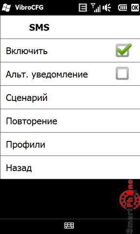 Интерфейс главного меню программы представлен пользователям настройками вибрирования для ваших конфигураций телефона, SMS и электронной почты.