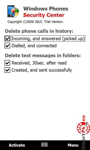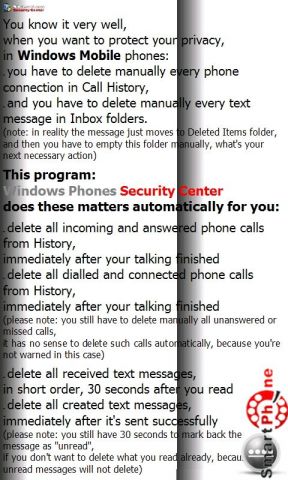 Windows Phones Security Center - простая в использовании программа позволяющая Вам производить удаление истории телефонных звонков и SMS сообщений.