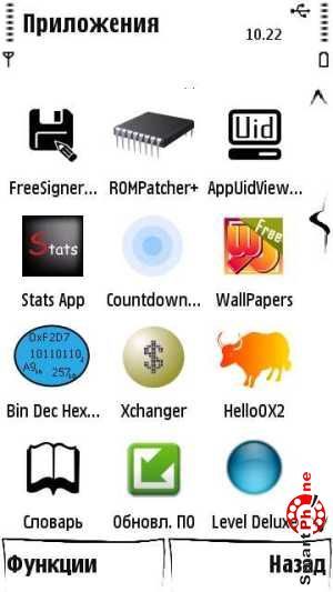 Внизу главного меню программы присутствуют два пункта: слева пункт Функции (содержит в себе все необходимые функции для адекватной работы с утилитой), справа находится пункт Выйти (позволяет выходить из программы в главное меню нашего смартфона).
