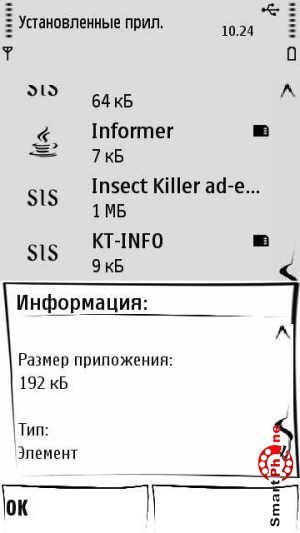Поскольку рассматриваемая программа является виджет-приложением, устанавливается она немного иначе, чем SIS-файлы. Существует несколько способов установки виджет-приложений на смартфон. Мы пойдем самым простым - распаковываем архив с игрой на нашем ПК, а далее пользуясь программой PC Suite, устанавливаем распакованный из архива инсталляционный файл на наш смартфон. При этом все, что нужно, распаковывается в соответствующую папку, а  в диспетчере приложений появляется элемент для деинсталляции: