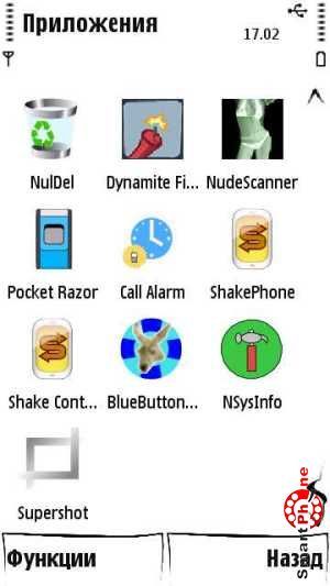 Внизу главного меню программы присутствуют два пункта: слева пункт Функции (содержит в себе все необходимые функции для адекватной работы с утилитой), справа пункт Назад (позволяет выйти из программы в главное меню нашего смартфона).