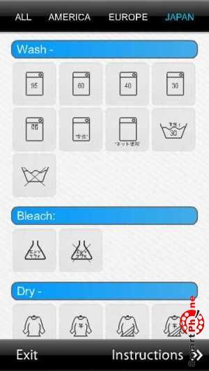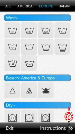 Программа Laundry Help представляет собой утилиту, содержащую символы, которые Вы часто видите на ярлыках одежды, и найдя
