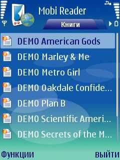 Как мы видим главное меню программы представляет собой список демо-книг, так любезно представленный нам разработчиками. Из-под главного меню программы мы можем перейти к к нескольким другим режимам работы программы, а именно:
