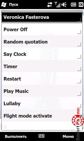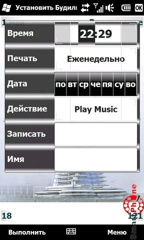 (+): Поддержка форматов WAV, MP3, WMA, MID, ASX, на каждый будильник можно назначить картинку, воспроизведение текущего времени голосом, несколько режимов будильника (выходной, рабочий день, каждый день и т.д.), умеет повторять сигнал через заданный промежуток времени, к каждому будильнику можно привязать действие (Включение/Выключение GSM модуля, запуск приложения и пр.), поддержка скинов, огромное количество настроек.