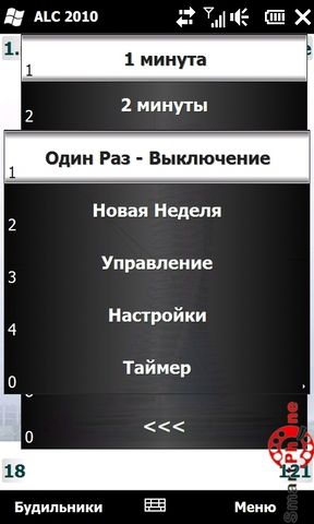 Внизу главного меню программы присутствуют два пункта: Меню (содержит в себе все необходимые функции для работы с программой), Будильники (с помощью этой функции мы можем создавать различные будильники).
