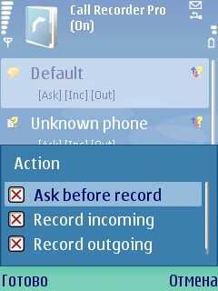 Программа Call Recorder Pro представляет собой утилиту, с помощью которой Вы сможете записывать Ваши телефонные разговоры. Программа имеет возможность выбора формата записи звуковых файлов - WAV, либо AMR, также Вы сможете задать максимальное время записи телефонных разговоров и многое другое.