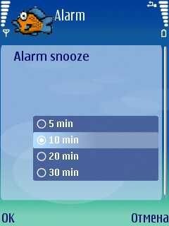 Alarm snooze - с помощью данной настройки мы можем задать временной промежуток так называемой сигнальной дремоты будильника: