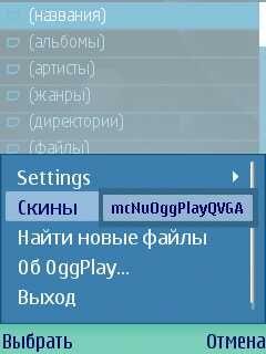 Скины - с помощью данной функции мы можем изменять скины проигрывателя. К сожалению, в представленном нам разработчиками списке присутствует только один скин: