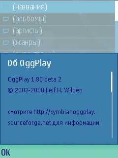 Об OggPlay - с помощью данной функции мы можем изучить информацию о данной версии программы и о её разработчиках: