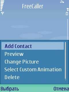 Select Custom Animation - с помощью данной функции мы можем также присваивать анимационные картинки контактам. Но, к сожалению, данная функция не работоспособна, и при выборе анимашки выдается ошибка.