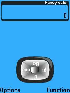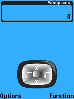 Перейдем к рассмотрению пункта Function, главного меню программы. Выбор данного пункта позволяет нам переходить к более сложным математическим операциям. Единичное нажатие джойстиком нашего смартфона позволяет нам перейти к работе по нахождению корней и возведению в третью степень, а двойное нажатие позволяет перейти к нахождению логарифмов: