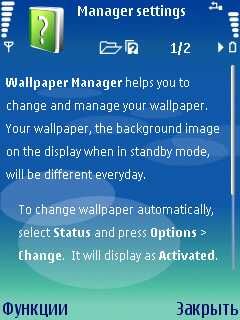Программа Wallpaper Manager представляет собой утилиту, с помощью которой Вы сможете автоматически ежедневно менять обои на рабочем столе смартфона. Обои Вы выбираете сами, пользуясь изображениями, находящимися на карте памяти, либо в памяти смартфона. В программе имеется широкий спектр опций для редактирования загружаемых картинок.
