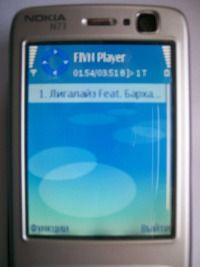 Интерфейс главного меню программы очень прост, и представлен пользователю списком всех аудио файлов, которые содержаться на дисках памяти нашего смартфона. Прослушивать аудио файлы можно путем выбора их из списка джойстиком нашего смартфона. Вверху главного меню программы, прямо над списком музыкальных композиций размещена информация о текущем выбранном аудио файле, а именно - текущее время воспроизведения, общее время воспроизводимой композиции и еще какая то непонятная информация, которая почему то представлена в закодированном текстовом формате (исходя из этого довольно сложно определить назначение этой информации). Регулировку звука воспроизводимого аудио файла мы можем выполнять также с помощью джойстика нашего смартфона, клацая им влево (уменьшение звука), либо же вправо (увеличение звука):