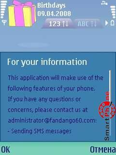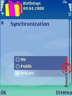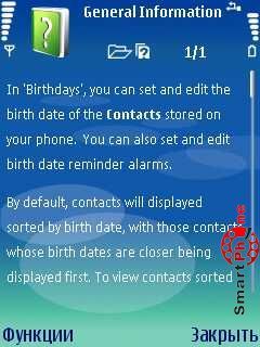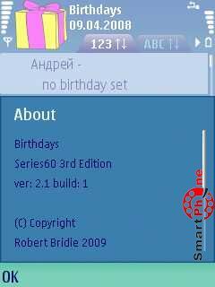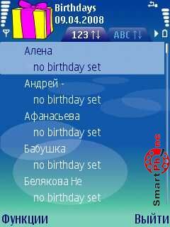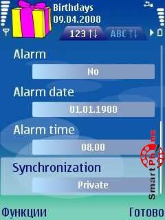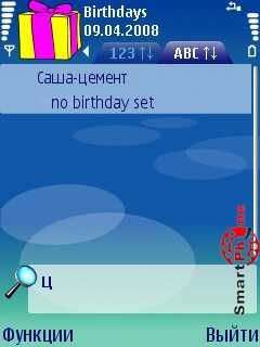 и напоминание о предстоящем Дне рождения в виде звукового сигнала. В программе присутствует возможность просмотра списка дней рождения, как в