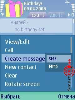 Create message - с помощью этой функции мы можем отравлять СМС и ММС предварительно выбранным абонентам, из списка главного меню программы:
