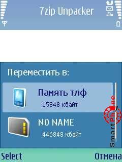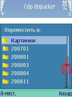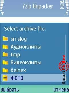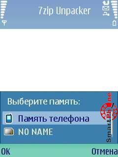 Unpack - с помощью этой функции мы можем производить распаковку архивов упакованные с помощью программы 7zip. После выбора этой функции нам предлагается выбрать диск памяти смартфона (то есть карту памяти, либо внутреннюю память смартфона):