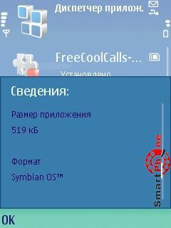 Как и большинство программ для смартфонов, утилита устанавливается путем распаковки SIS-файла. При этом все, что нужно, распаковывается в соответствующую папку, а в диспетчере приложений появится элемент для деинсталляции: