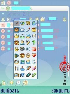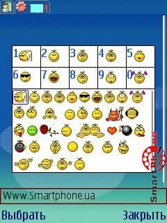 необходимо в процессе набора нажать левую софт клавишу смартфона, тем самым запуская список смайлов программы:
