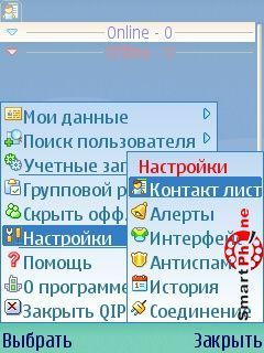 Закрыть QIP - с помощью этой функции мы можем выйти из программы в главное меню смартфона.